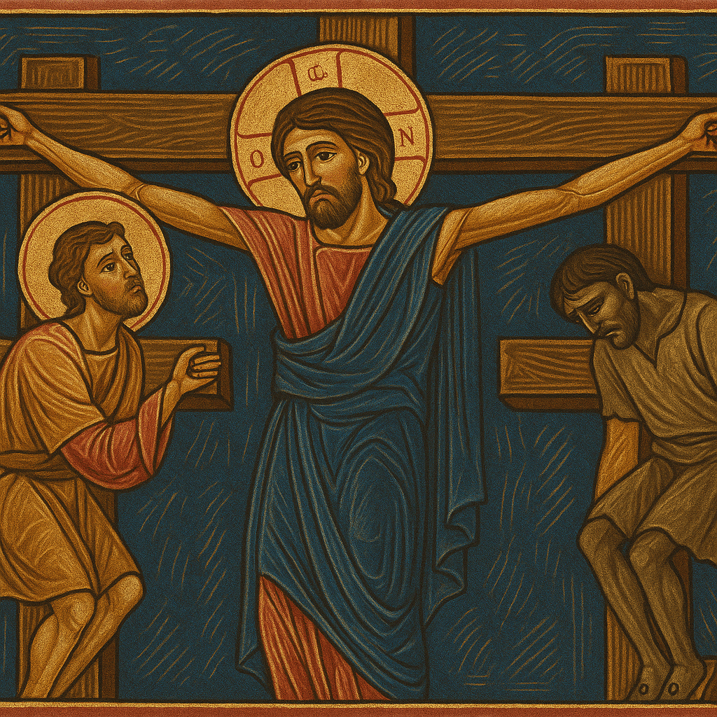 | The Curator’s Notes: Dismas is the traditional name given to the penitent thief who, according to Luke’s Gospel, asked Jesus to “remember me when you come into your kingdom” while they were both being crucified. Jesus responded, “Today you will be with me in paradise.” This moment of last-minute redemption anchors the entire poem. |